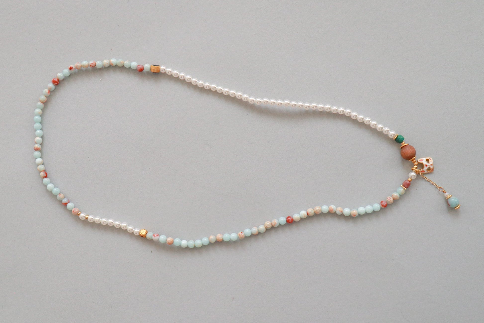Materials: Shoushan stone · faux pearl · fox mask pendant